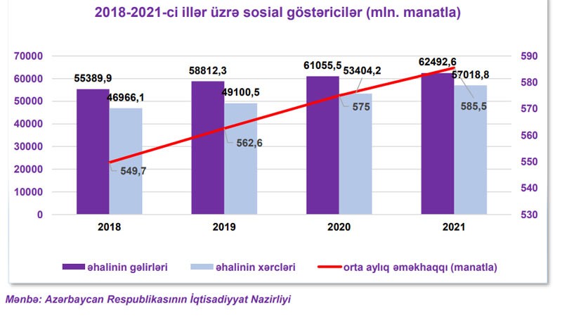 Növbəti ildə ortaaylıq əməkhaqqının ötən illə müqayisədə real ifadədə 0,5 faiz artaraq 549,7 manat olacağı proqnozlaşdırılır.