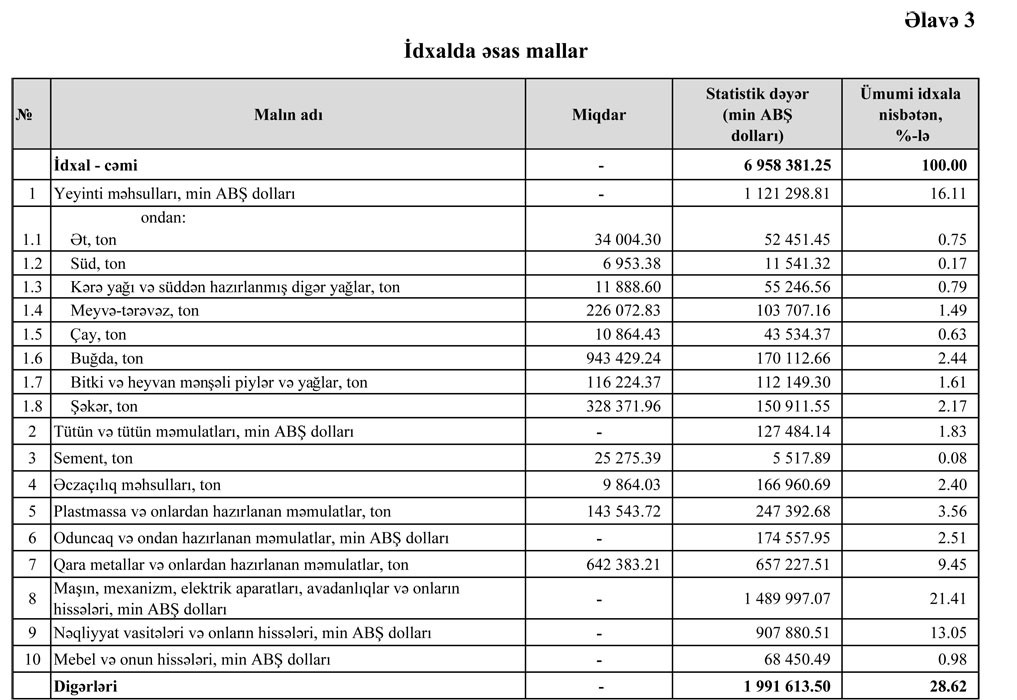 Azərbaycanın ən çox ixrac və idxal etdiyi mallar