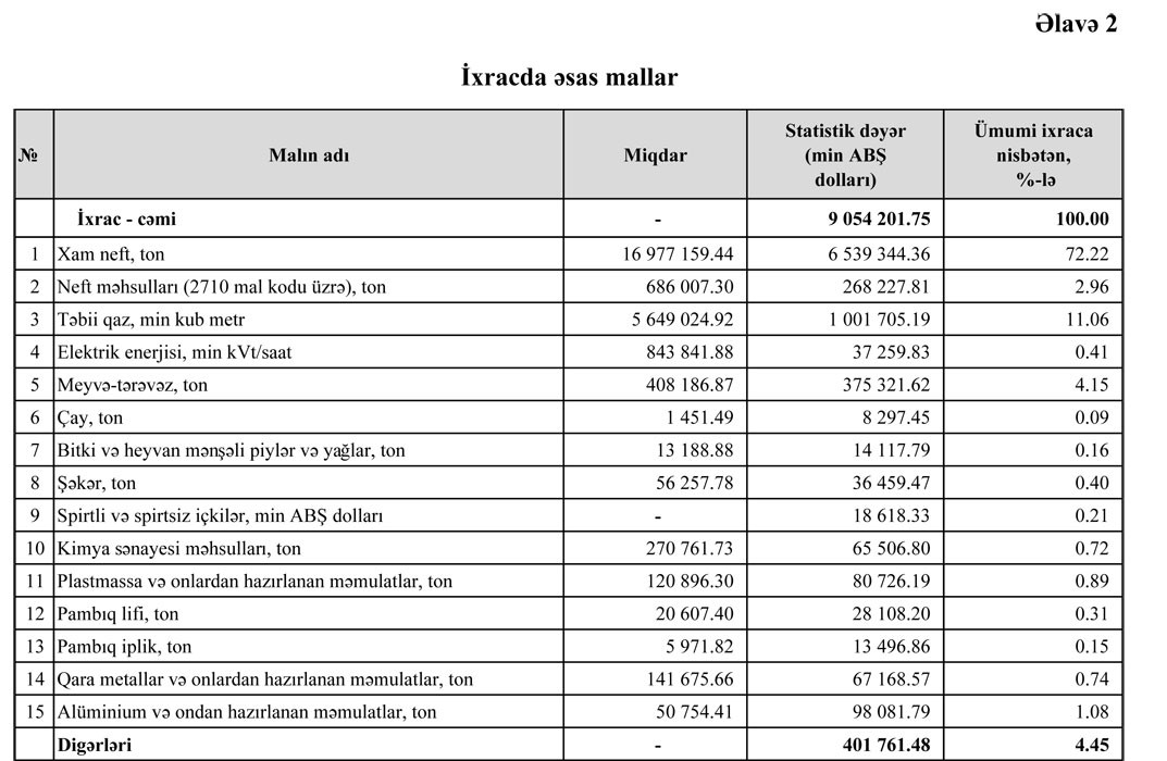 Azərbaycandan ixracı 1 milyard dolları keçdi