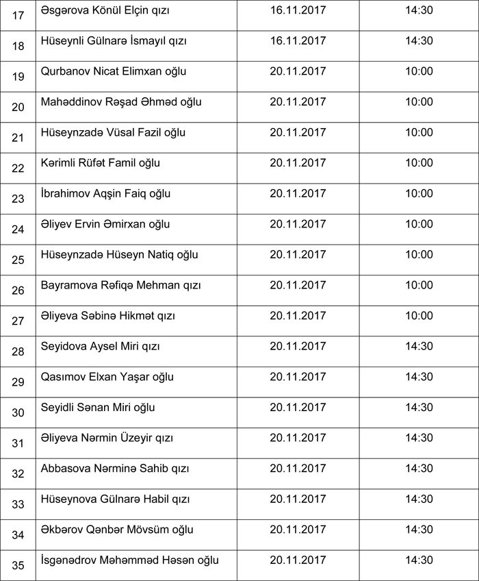 Attestasiyada iştirak edənlərin siyahısı ilə bu link vasitəsi ilə tanış ola bilərsiniz.