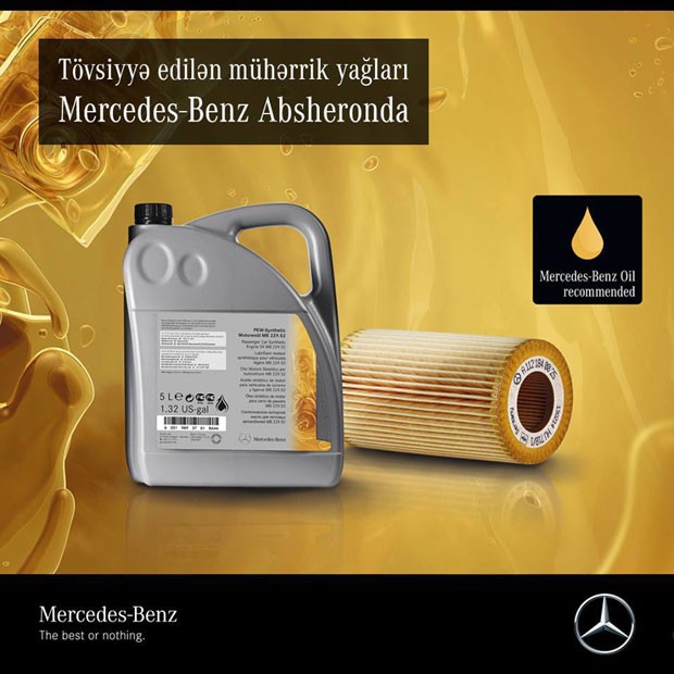 Mühərrik yağının vaxtında dəyişdirilməsi periodik baxışın əsas göstəricilərindəndir. Çünki mühərrik yağı avtomobilin uzun müddət istismar olunmasını təmin edən faktorlardandır. Adətən hər istehsalçı öz avtomobilləri üçün xüsusi mühərrik yağı markaları tövsiyə edir. Mercedes-Benz markasının tövsiyə etdiyi mühərrik yağı Petronasdır. Hansı ki, bu yağı Azərbaycana rəsmi idxalçısı Mercedes-Benz markasının rəsmi dileri Abşeron Avtomobil Mərkəzidir. Abşeron Avtomobil Mərkəzi Mercedes-Benz Markasının tövsiyə etdiyi mühərrik yağlarınə bir başa istehsalçıdan əldə edir və Bakı-Sumaqayıt yolu 6-cı km-də yerləşən rəsmi servis mərkəzində öz müştərilərinə təqdim edir.