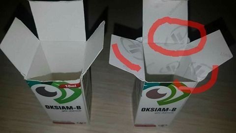 AEM-in Dərman vasitələrinin keyfiyyətinin yoxlanılması laboratoriyası tərəfindən laborator analizi aparılan və saxta olduğu müəyyən edilən “Oksiam – B” göz damcısı həm tərkib, həm də qablaşdırmasında bəzi nüanslara görə Sanitariya-Karantin Müfəttişliyinə gigiyenik sertifikat verilməsi üçün təqdim olunan nümunədən fərqlənir.