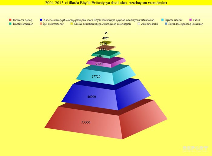 Son 13 ildə Birləşmiş Krallığın dil kursları, kollec və universitetlərində təhsil almaq üçün 9120 azərbaycanlı bu ölkəyə daxil olub. 6020 nəfər isə tranzit sərnişin kimi Böyük Britaniyaya ayaq basıb. 1845 nəfər isə yüksək ixtisaslı mütəxəssis və investor bu ölkəyə işləmək və biznes qurmaq üçün gedib. 1740 nəfər isə “Ölkəyə girişinə icazə verilən digər şəxslər” kateqoriyasında (öz şəxsi vəsaitləri hesabına yaşıyan insanlar və onların ailə üzvləri, beynəlxalq təşkilatların üzvləri) qeyd edilib. Azərbaycanın 445 nəfər vətəndaşı isə Böyük Britaniyada məskunlaşmış şəxslərlə ailə həyatı qurub və yaşamaq üçün bu ölkəyə gedib.