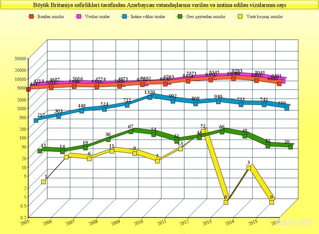 2005-2016-cı illərdə Böyük Britaniyanın xarici ölkələrdəki konsulluqları Azərbaycan vətəndaşları tərəfindən edilən viza müraciətlər üzrə 82911 ərizəyə baxıb.