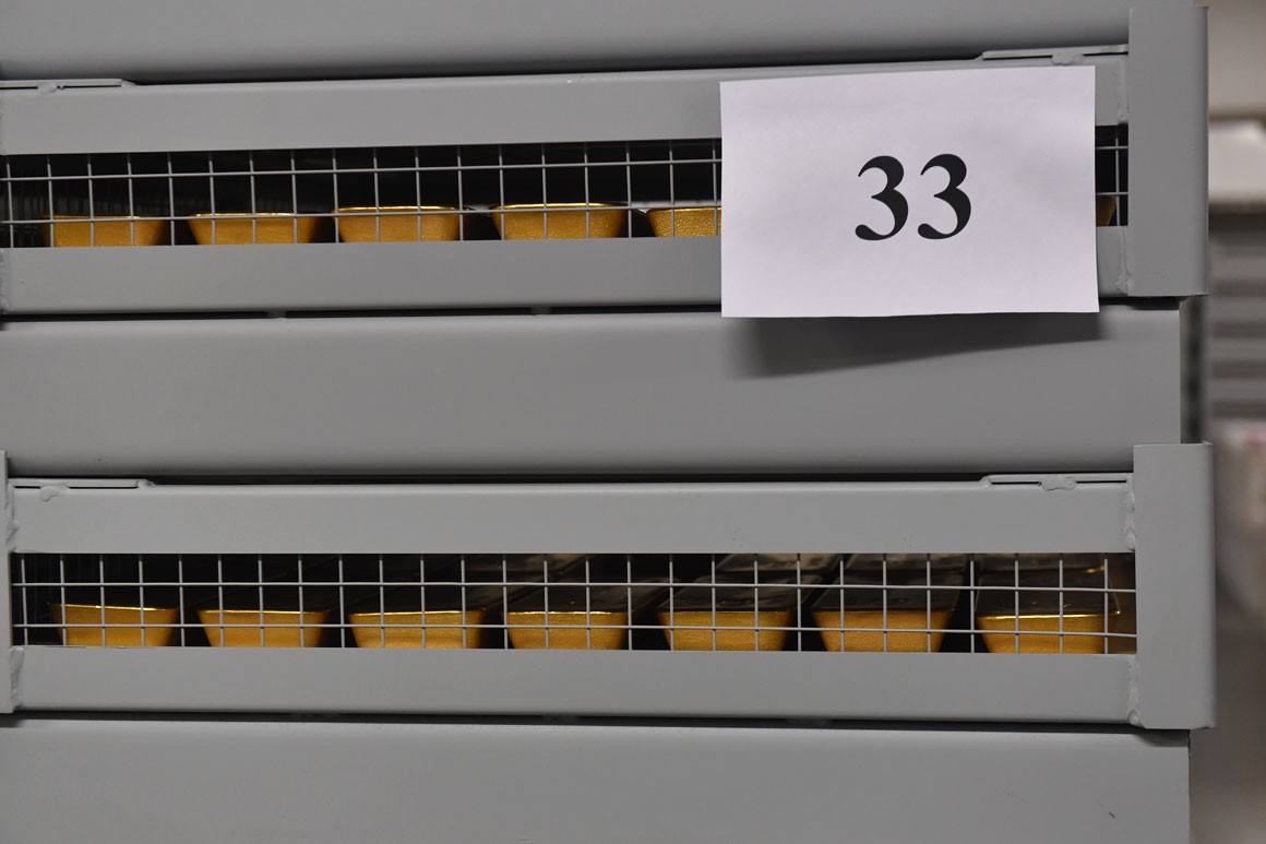 Külçələr qəfəsli konteynerlərə diqqətli bir şəkildə yerləşdirilir. Hər birinin içərisinə 20 külçə qoyulan konteynerlər daha sonra möhürlənir.