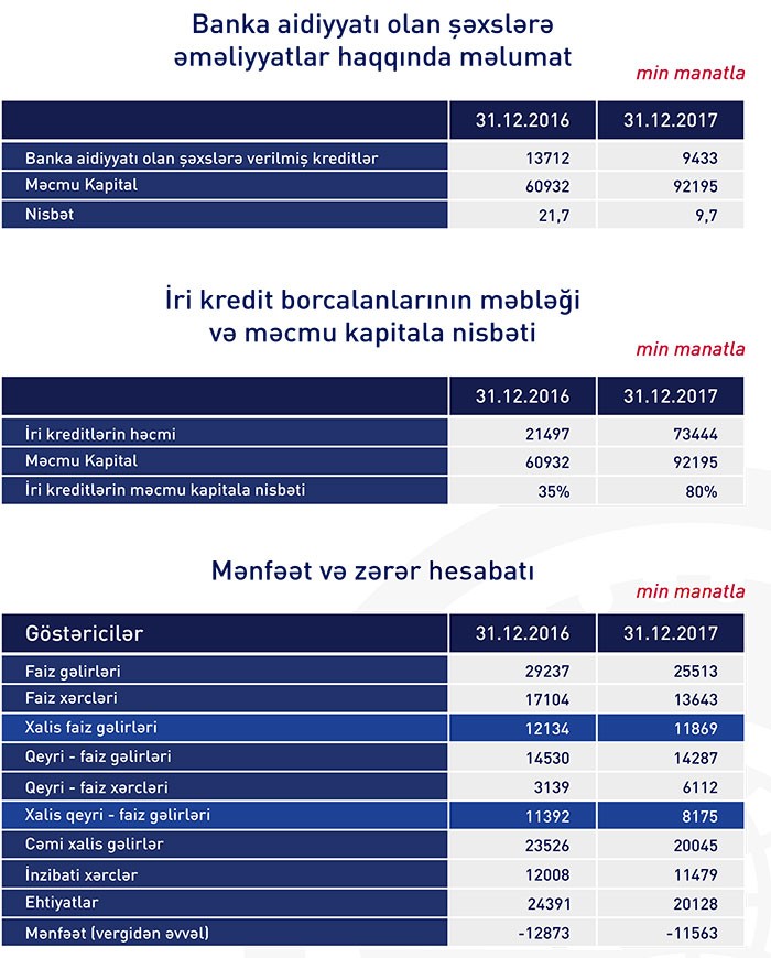 "RabitəBank" ASC 2017-ci ili 11 milyon 563 min manat zərər ilə bağlayıb.