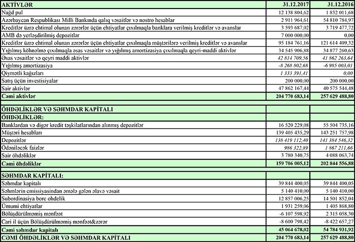 “Amrahbank” ASC 2017-ci ilin yekunu üzrə maliyyə göstəricilərini açıqlayıb.