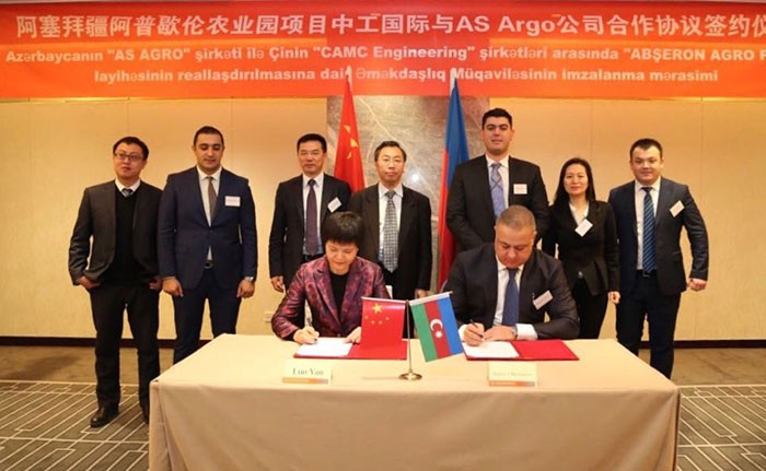 6 fevral tarixində Pekin şəhərində Azərbaycanın “AS Group Investment” şirkəti ilə Çinin iri “China CAMC Engineering Co., Ltd.” şirkəti arasında “Abşeron Aqro Park” layihəsinin reallaşdırılmasına dair Əməkdaşlıq Müqaviləsi imzalanıb. Müqaviləyə əsasən CAMCE “Abşeron Aqro Park” layihəsinə 140 milyon ABŞ dolları məbləğində vəsait cəlb edəcək.