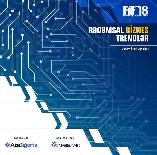 5 may 2018-ci il tarixində Bakı şəhəri “Pullman” otelində ölkəmizin aparıcı şirkətlərinin dəstəyi və iştirakı ilə II Maliyyə və İnvestisiya Forumu (FIF2018) “Rəqəmsal Biznes Trendləri” devizi ilə keçiriləcək.