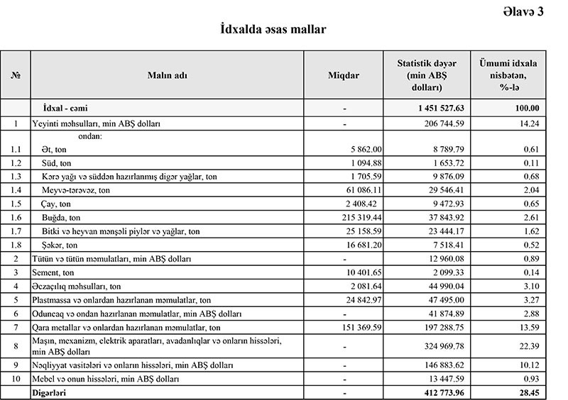 İdxal əməliyyatları 1 milyard 451 milyon 527 min ABŞ dolları, ixrac əməliyyatları 2 milyard 210 milyon 452 min ABŞ dolları təşkil edib. İxrac rəqəmində hesabat dövründə gömrük orqanlarında rəsmiləşdirilməsi başa çatdırılmış ixrac olunan xam neft və təbii qazın dəyərinə dair məlumatlar nəzərə alınmışdır.