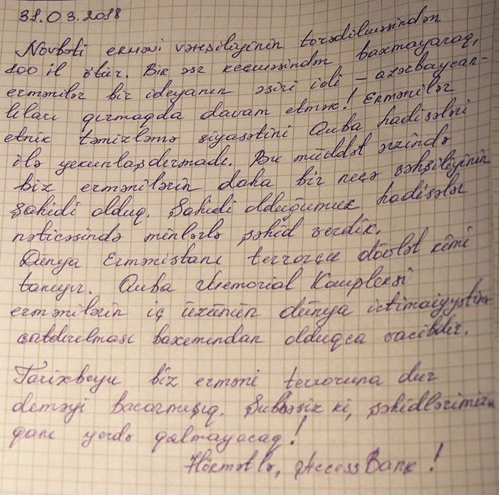 Yekunda AccessBank adından kompleksin xatirə dəftərinə ürək sözləri yazılıb.