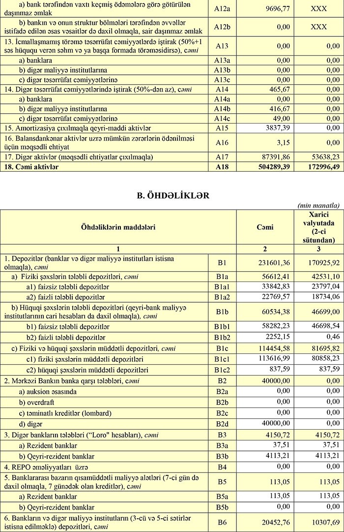 30 Mart 2018-ci il tarixində "AG Bank" 504 milyon 289 min manat cəmi aktivlərə malik olub.