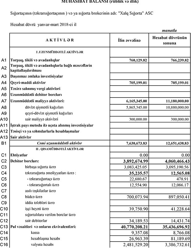 “Xalq Sığorta” Maliyyə Bazarlarına Nəzarət Palatasına təqdim etdiyi ilkin məlumatda, ilk rübdə 1 milyon 271 min manat sığorta haqları hesabladığını bildirmişdi. Şirkət ötən ilin ilk rübündə 1 milyon 667 min manat sığorta haqları topladığı məlumatını təqdim etmişdi.