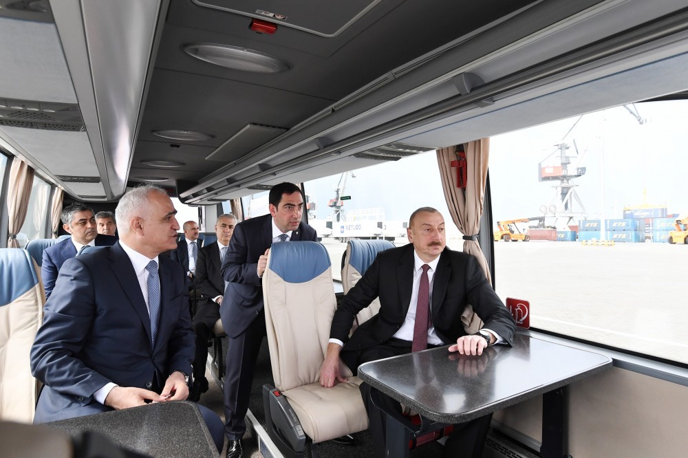 Dövlətimizin başçısı Bakı Beynəlxalq Dəniz Ticarət Limanı Kompleksinin açılışını bildirən düyməni basıb.