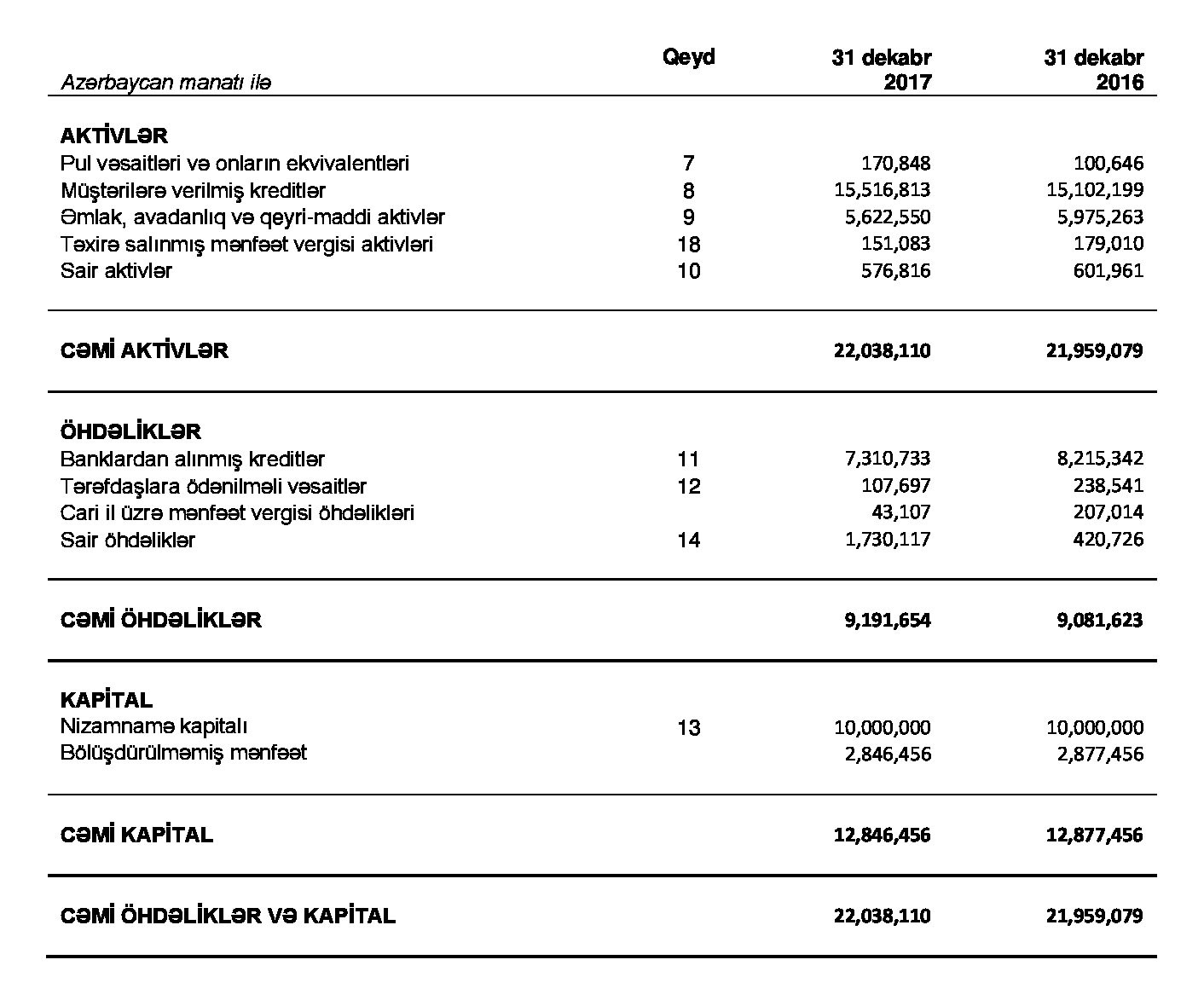 2016-cı illə müqayisədə müştərilərə verilmiş kreditlər 414 min manat artaraq 15 milyon 517 min manata yüksəlib. "Embafinans" 10 milyon manat nizamanmə kapitalına malikdir.