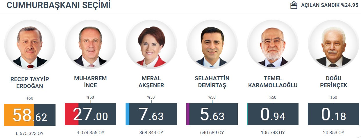 YSK-nın (Türkiyənin Mərkəzi Seçki Komissiyası) rəsmi seçki nəticələrini elan etməsilə 6 prezident namizədindən biri 50%+1 səs toplaya bilməsə, Prezident seçkisi ikinci tura qalacaq. Ən çox səs alan iki namizədin qarşılaşacağı seçki 15 gün sonra 8 İyul Bazar günü baş tutacaq. 8 İyula qədər namizədlər bir daha meydanlarda təbliğat aparacaqlar. 8 İyulda ən çox səs yığan namizəd Prezidentlik Sisteminin ilk Prezident olacaq.