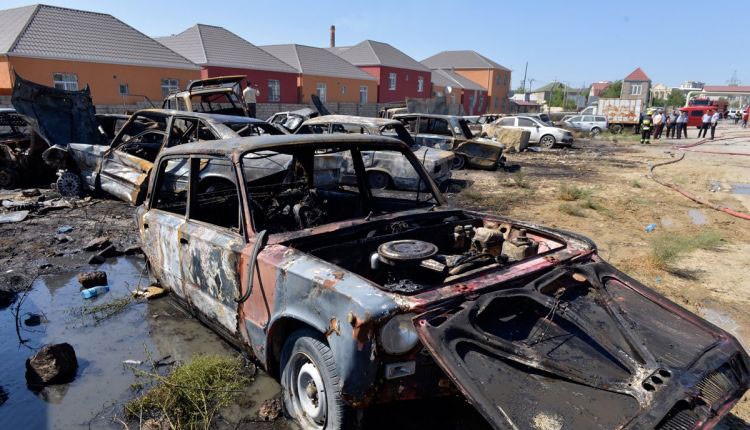Məlumata görə, yanan avtomobillər qəzaya uğramış və istismara yararsız maşınlardır.
