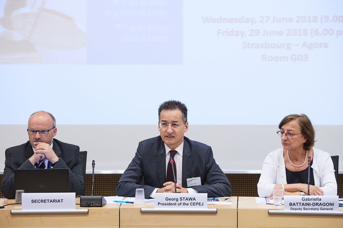 İclasda Avropa Şurasının 47 üzv dövlətini təmsil edən nümayəndələr və ədalət mühakiməsi sahəsində ixtisaslaşan müxtəlif beynəlxalq təşkilatların rəhbərləri iştirak ediblər. Təntənəli keçirilən iclasın açılışına Avropa Şurasının və Avropa İttifaqının rəsmiləri dəvət olunublar. Avropa Şurasının Baş katibinin müavini xanım Qabriella Battaini-Draqoni iclası açıq elan edərək CEPEJ-in 15 il ərzində əldə etdiyi nailiyyətlər münasibətilə tədbir iştirakçılarını təbrik edib.