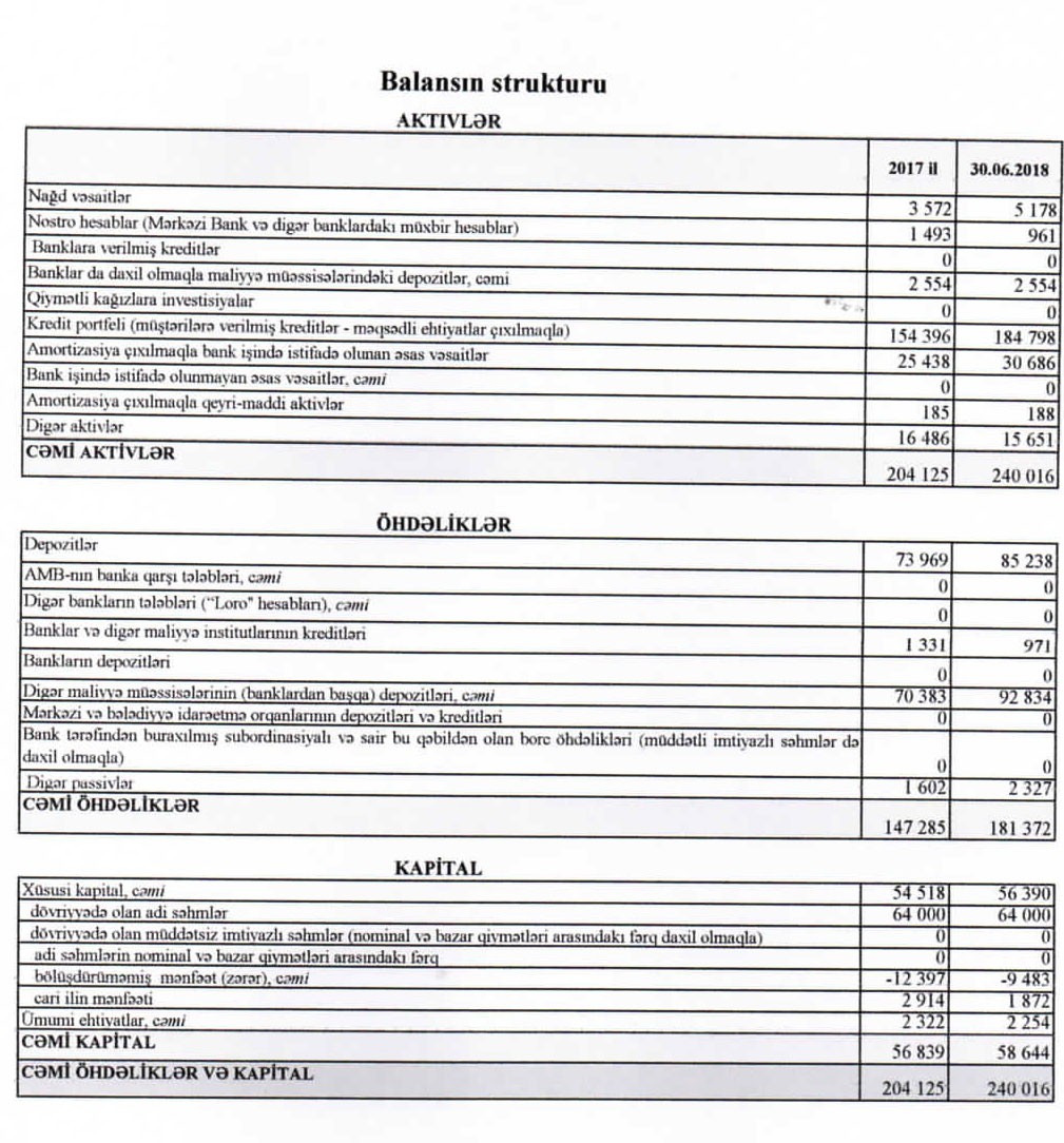 6 ayda Bankın depozit portfeli 11 milyon 269 min manat artaraq 85 milyon 238 min manata çatıb.