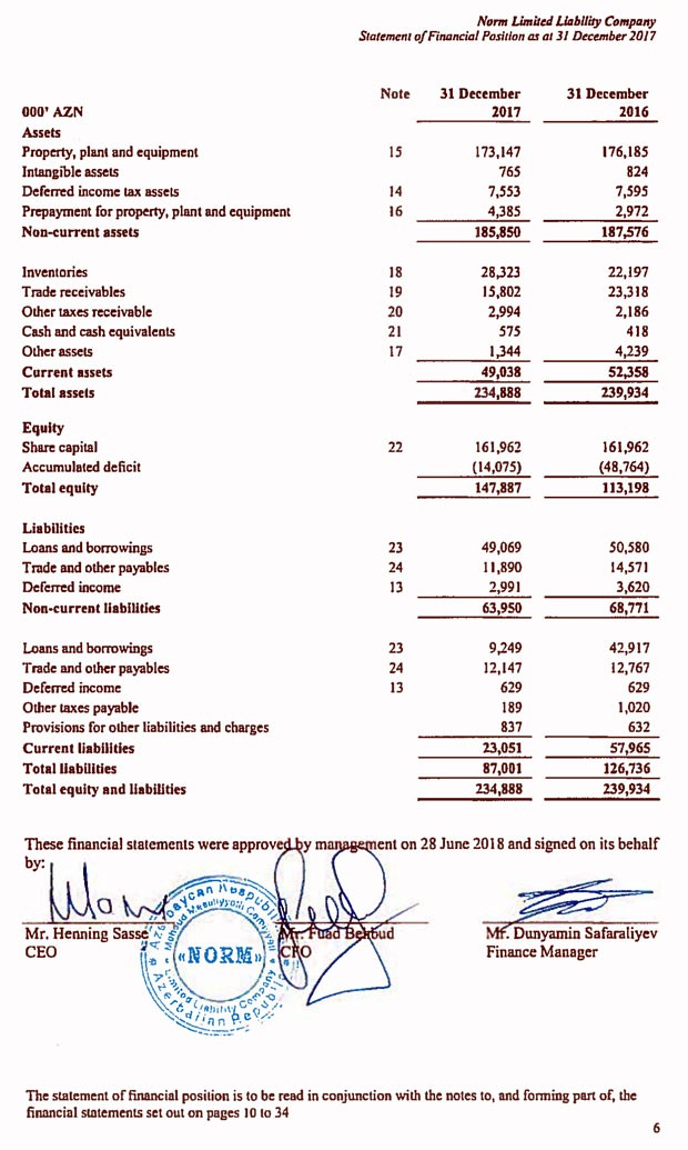 31 Dekabr 2017-ci il tarixində “Norm” MMC-nin cəmi aktivləri 234 milyon 888 min manat təşkil edib.