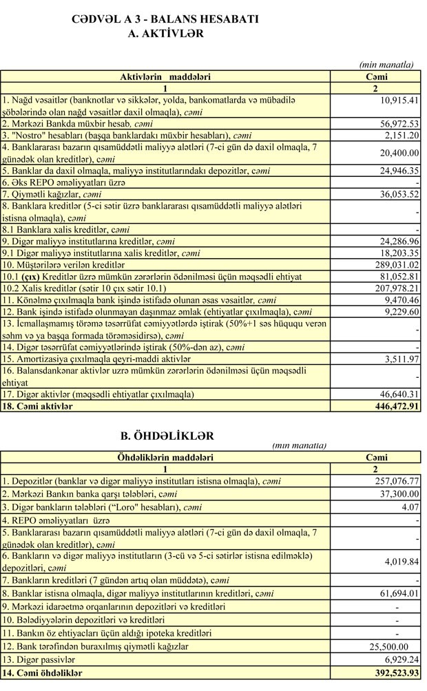 Bu il ərzində müştərilərə verilən kreditlər 291 milyon 46 min manatdan 289 milyon 31 min manata düşüb. Xalis kreditlər isə 218 milyon 94 min manatdan 207 milyon 978 min manata geriləyib.