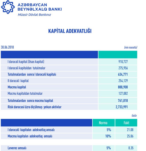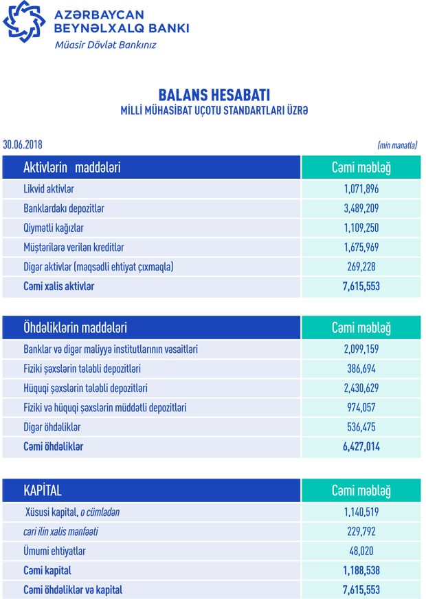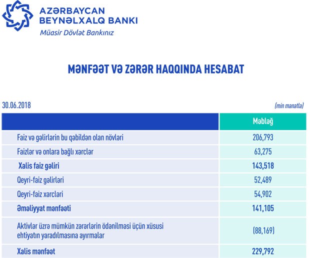 “Azərbaycan Beynəlxalq Bankı” ASC 2018-ci ilin birinci yarısını 229 milyon 792 min manat xalis mənfəətlə başa vurub.