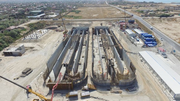 “Azərsu”dan “Marja”ya daxil olmuş məlumata görə, icrasına 2017-ci ildə başlanılmış layihə üzrə işlərin 70 faizi yerinə yetirilib. Relyef nəzərə alınaraq ərazidə yaranan tullantı sularının toplanaraq təmizləyici qurğuya ötürülməsini təmin etmək məqsədilə giriş nasos stansiyasının yer səthindən 28 metr dərinlikdə yerləşən şaxtası inşa edilib. Burada ötürmə gücü sutkada 260 min kubmetr olan nasos stansiyası quraşdırılacaq. Tullantı sularının tərkibində olan iri əşyalar barmaqlıqlarda, xırda hissəciklər və yağlar isə incə barmaqlıq və qumtutucuda təmizlənəcək. Mexaniki təmizləmə prosesi yekunlaşdıqdan sonra tullantı suları bioloji təmizlənmə məqsədilə biofosfor qurğusuna ötürüləcək. Artıq biosfor qurğusunun tikintisi yekunlaşmaq üzrədir. Yarana biləcək qoxunu aradan qaldırmaq məqsədilə dezodorasiya qurğusu inşa edilir.