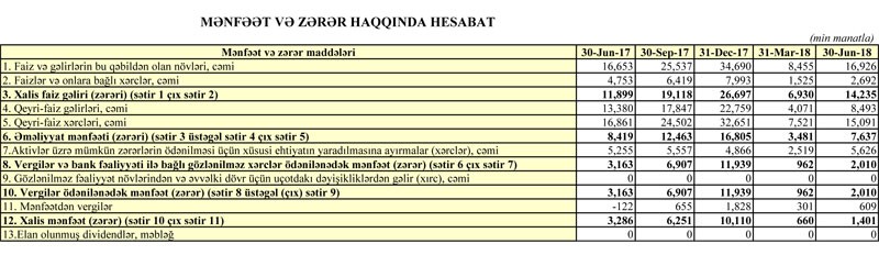 Aktivlər üzrə mümkün zərərlərin ödənilməsi üçün xüsusi ehtiyatın yaradılmasına ayırmalar çox artmayıb. Əgər ötən iln 6 ayında ehtiyatlara 5 milyon 255 min manat ayırılmışdırsa, bu ilin 6 ayı ərzində 5 milyon 626 min manat ayırılıb.