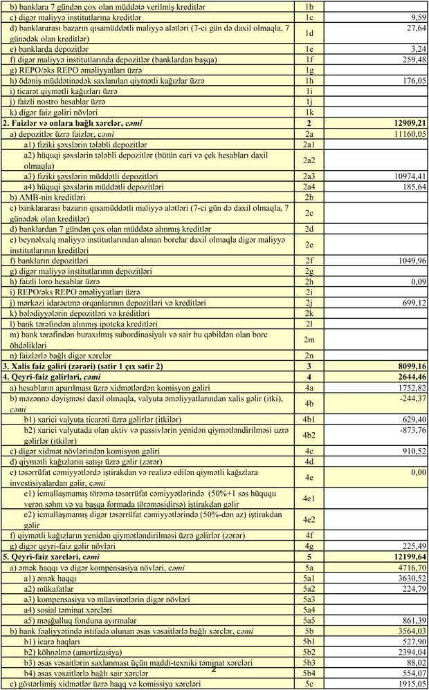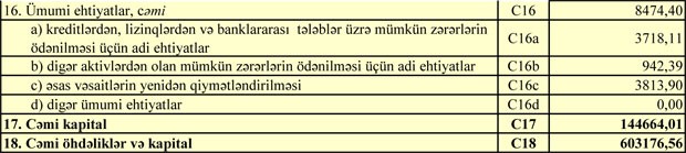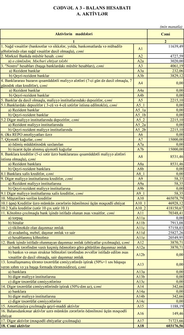 Bank 30 İyun 2017-ci il tarixində 609 milyon 875 min manat cəmi aktivlərə, 458 milyon 143 min manat cəmi öhdəliklərə və 151 milyon 731 min manat cəmi balans kapitalına malik idi.