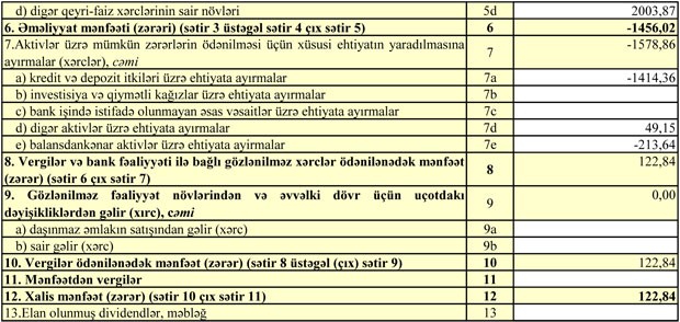 Cari ilin birinci yarısında cəmi xərclər cəmi gəlirləri üstələdiyindən “AtaBank”ın 1 milyon 456 min manat əməliyyat zərəri yaranıb. Lakin ötən illər ehtimal olunan kredit və depozit itkiləri üçün yaradılmış ehtiyatların 1 milyon 578 min manatı azad olduğundan və mənfəətə əlavə edildiyindən, həm əməliyyat zərəri bağlanıb, həm də bank cari ilin birinci yarısını təxminən 123 min manat xalis mənfəətlə başa vurub.