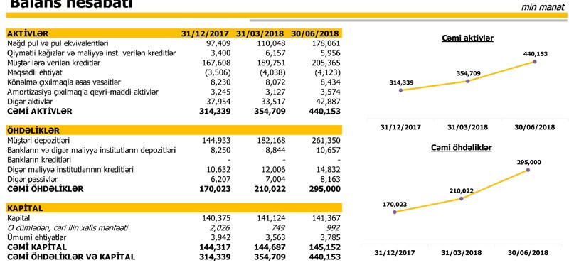 Rüb ərzində 24 min yeni müştəri hesabı açılmışdır. Yeni sahibkar və hüquqi müştərilərin sayı rüblük 332 olmaqla, 12 mini keçmişdir.