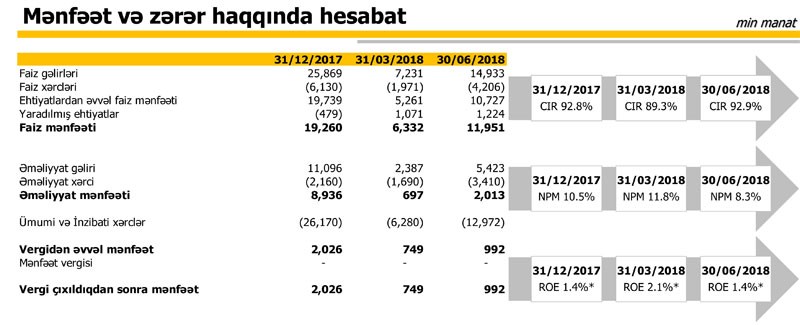 “Expressbank” ASC 2018-ci ilin birinci yarısını 992 min manat xalis mənfəətlə başa vurub. Xalis mənfəətin 749 min manatı 1-ci rübdə, 243 min manatı 2-ci rübdə əldə edilib.