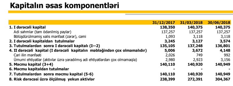 Bank ötən ilin birinci yarısında ehtiyatlara 952 min manat ayırdığı halda, bu ilin eyni dövründə ehtiyatların 1 milyon 224 min manatı azad olub.