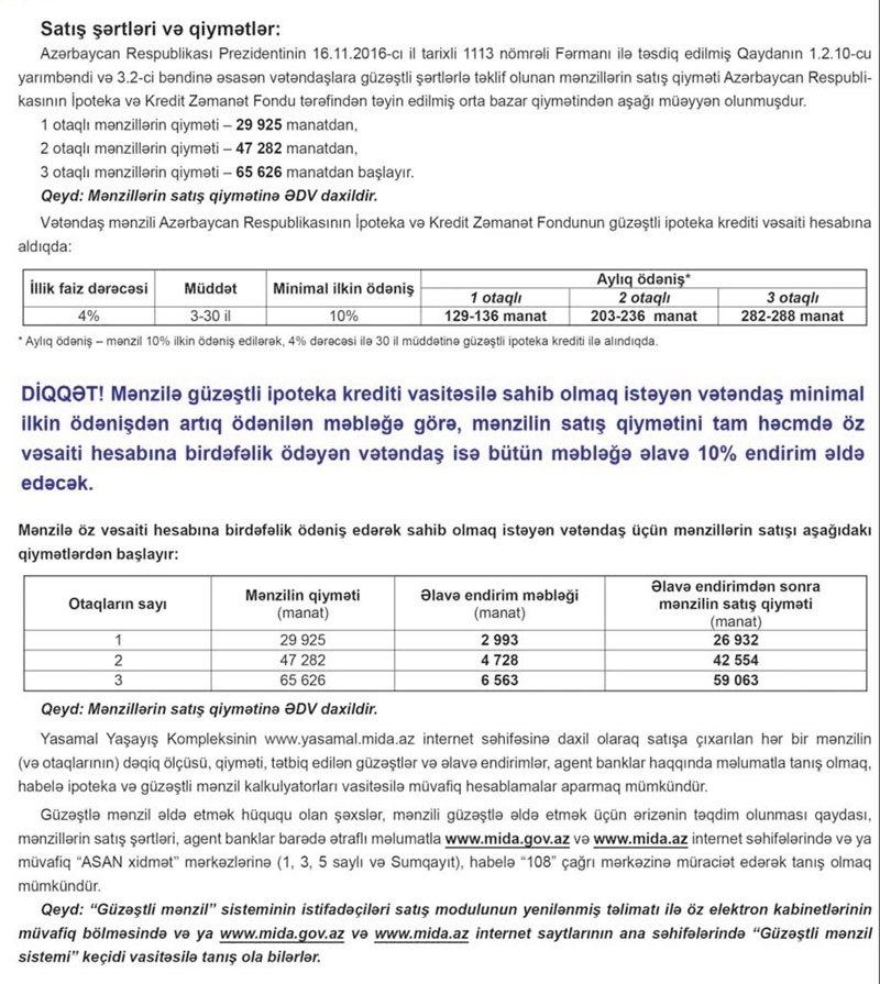 Yalnız “Güzəştli mənzil” sistemində elektron kabinetə sahib olmuş vətəndaşlar mənzil almaq hüququna malikdirlər. Ətraflı: buradan oxu