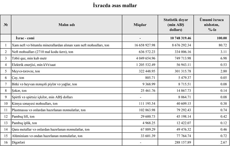 Azərbaycanın ən çox idxal və ixrac etdiyi mallar