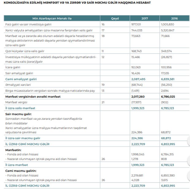 “Marja” Fondun illik hesabatına istinadən xəbər verir ki, xalis mənfəətin azalmasının əsas səbəbi xarici valyuta əməliyyatları üzrə məzənnə fərqindən xalis gəlirin 5 milyard 320 milyon 847 min manatdan 744 milyon 33 min manata düşüməsidir.