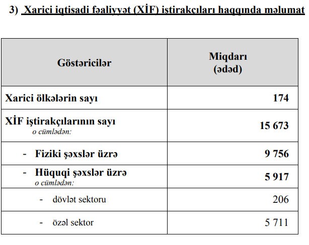Fiziki şəxslərin sayı 5935-dən 9756-ya, hüquqi şəxslərin sayı isə 4996-dan 5917-yə qalxıb. Son bir ildə 921 şirkət xarici ticarətlə məşğul olmağa başlayıb.