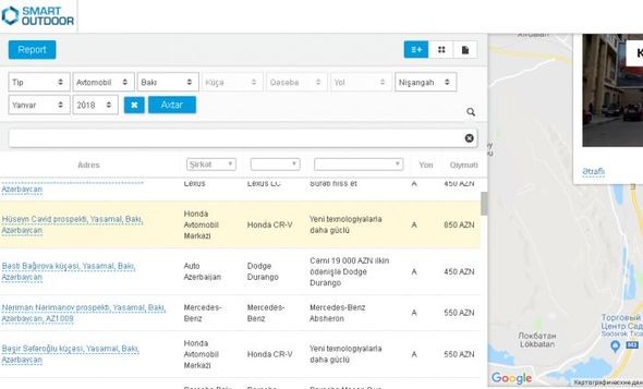 Yuxarıda qeyd etdiyimiz kimi, xəritə imkanının köməyilə siz küçə reklamlarının konkret ərazidəki fotosu ilə tanış ola biləcəksiniz.