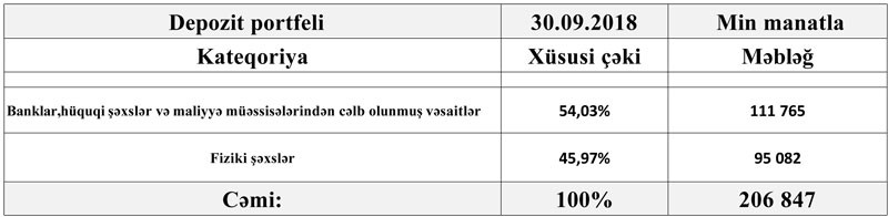 Müqayisə olunan dövrdə "NBC Bank"da depozitlər isə 71 milyon 331 min manatdan 100 milyon 590 min manata yüksəlib.