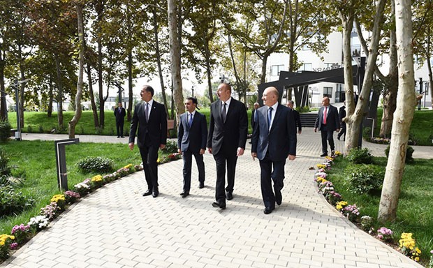Dövlətimizin başçısı kompleksin rəmzi açılışını bildirən lenti kəsib.