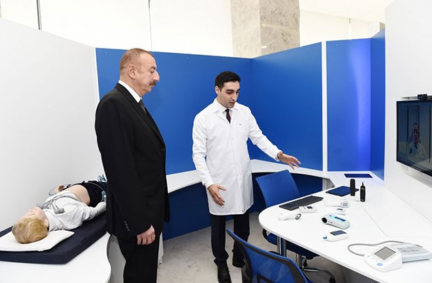 Prezident İlham Əliyevə “Sağlamlığın ağıllı təhlili” layihəsi barədə də məlumat verildi. Bu avadanlıq və proqram təminatı vasitəsilə hər bir şəxs olduğu məkanda öz sağlamlıq vəziyyəti barədə göstəricilərlə tanış ola bilər, həkim məsləhətləri və sağlamlığa dair tövsiyyələr ala bilər. Həmçinin uzaqdan diaqnozun qoyulması, tibbi məlumatların yaddaşda saxlanılması da göstərilən xidmətlər sırasındadır.
