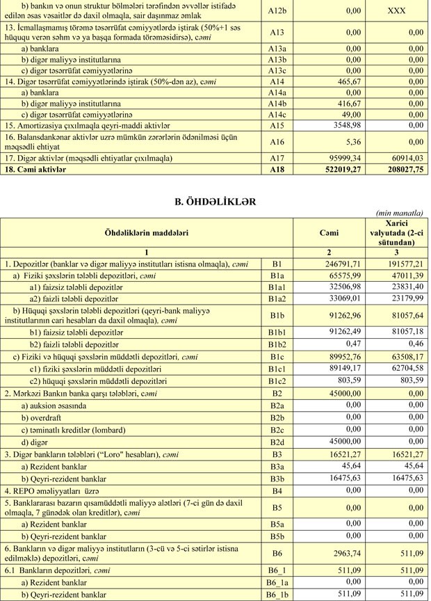 30 Sentyabr 2018-ci il tarixində cəmi kredit qoyuluşlarının 147 milyon 190 min manatını vaxtı keçmiş kreditlər təşkil edib. 31 Dekabr 2017-ci il tarixində bu məbləğ 147 milyon 296 min manat idi.