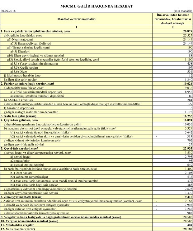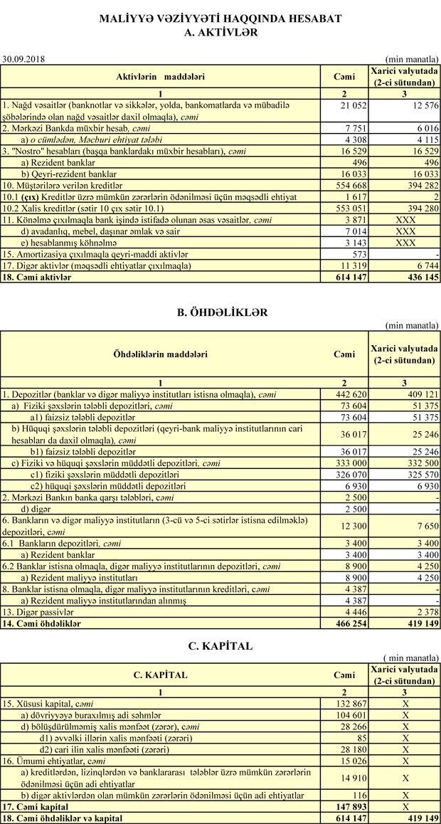 “Bank Silk Way”də depozitlər isə ötən ilin 30 Sentyabr tarixindəki 170 milyon 980.2 min manatdan 442 milyon 620 min manata qalxıb.
