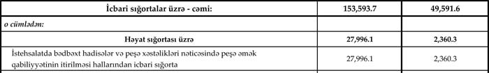İcbari həyat sığortası (İstehsalatda bədbəxt hadisələr və peşə xəstəlikləri nəticəsində peşə əmək qabiliyyətinin itirilməsi hallarından icbari sığorta) üzrə toplanmış sığorta haqları isə 3,5% azalaraq 27 milyon 996 min manata düşüb. Ötən ilin 9 ayı ərzində icbari həyat sığortası üzrə 28 milyon 332 min manat sığorta haqqı toplanmışdı.