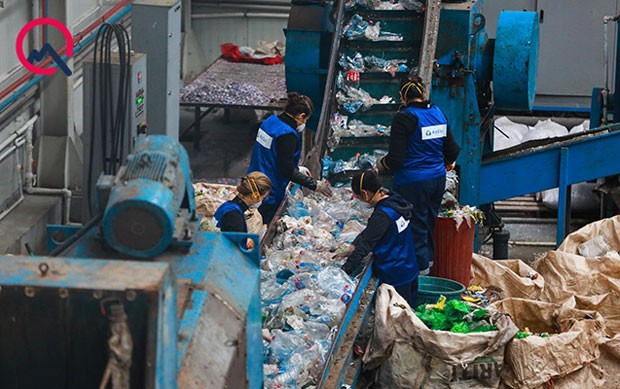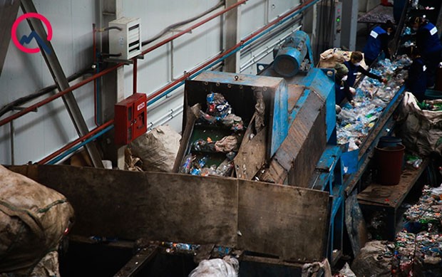 Zavodda gedən iş prosesini müşahidə edirik. Plastik butulkalardan yaradılmış “dağ” qısa müddət ərzində bir neçə dəfə azalıb-çoxalırdı. Onlar xammal halına salınmaq üçün 12 mərhələdən keçir. Əvvəlcə məmulatlar bunkerə daxil olur. İkinci olaraq etiket soyana yönləndirilir. Daha sonra isə üyüdücü anbara yollanır. Bu iki qurğu arasında çeşidləmə xətti var. Orada çeşidləyici əməkdaşlar qəhvəyi və yaşıl rəngli butulkaları seçərək sadəcə şəffaf və mavi rəngi saxlayır. Üyüdücüdə qablar qapağı ilə birlikdə üyüdülür. Yuyucuya keçdikdən sonra PET hissə suyun altına çökür, qapaq hissə isə suyun üstünə qalxır. Oradan ayrı-ayrı çıxışlardan anbarlara toplanır.
