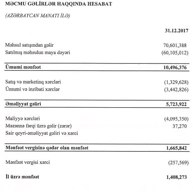 Ötən il "METAK" MMC-nin cəmi gəlirləri 70 milyon 639 min manat, o cümlədən məhsul satışından gəliri 70 milyon 601 min manat təşkil etmişdi.