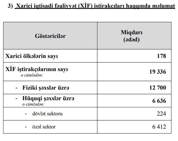 Azərbaycanda xarici iqtisadi fəaliyyət (XİF) iştirakçılarının sayı artıb.