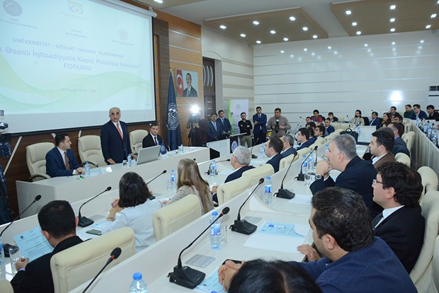“Bank Respublika”nın dəstəyi ilə təşkil olunan forumda UNEC rektoru, professor Ədalət Muradov açılış nitqi ilə çıxış edərək, bilik əsaslı iqtisadiyyata keçidin əhəmiyyətini qeyd edib. Universitet-Dövlət-Sənaye birliyinin faydalarına diqqət çəkən Ə.Muradov deyib ki, təhsilin keyfiyyətinin artırılması sırf real sektorla əməkdaşlıqdan keçir.