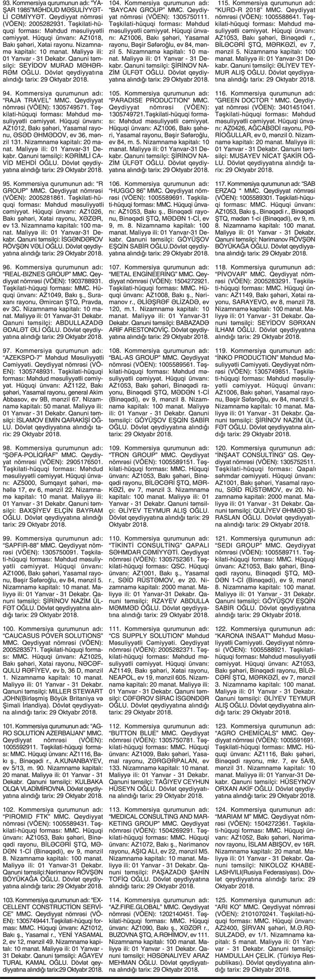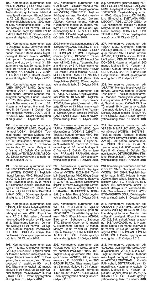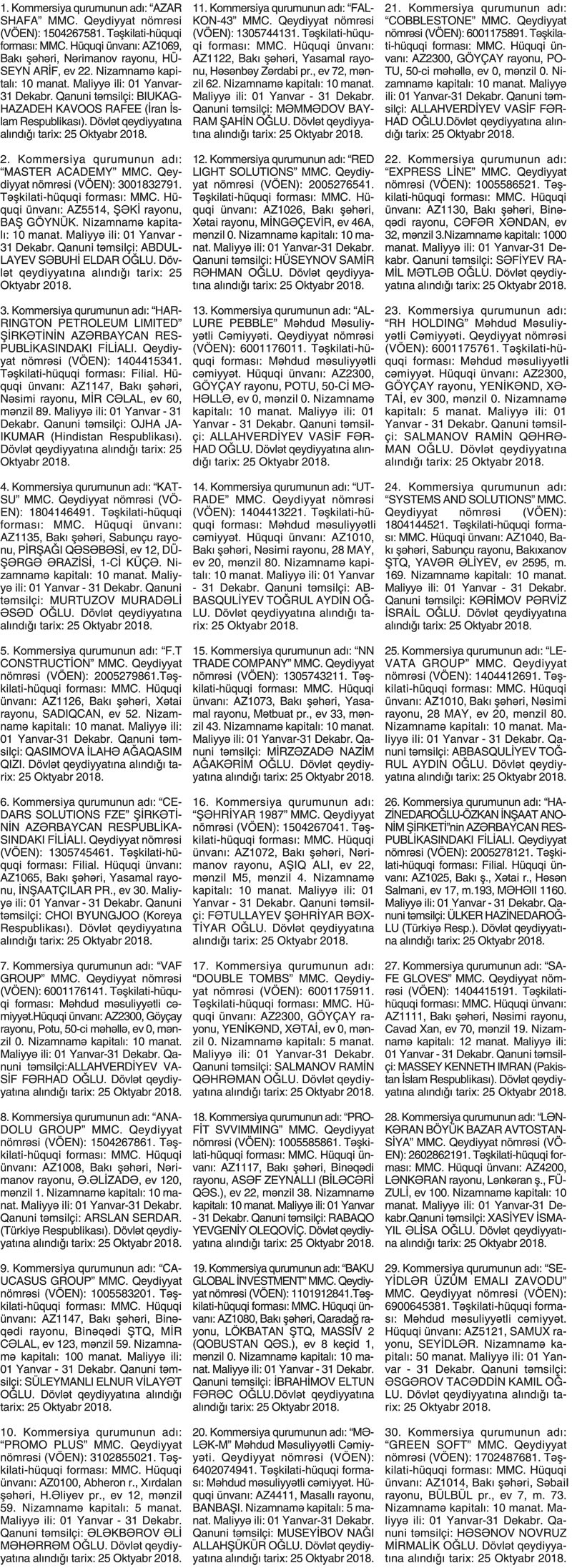 Yeni dövlət qeydiyyatına alınmış şirkətlər - SİYAHI