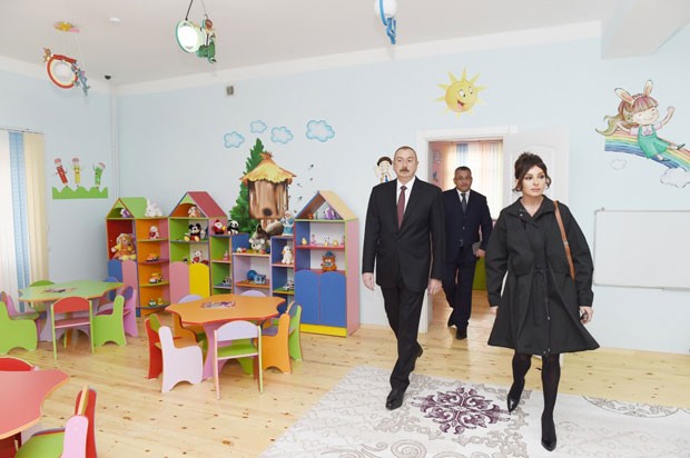 Sonra dövlətimizin başçısı və birinci xanım uşaq bağçasında yaradılan şəraitlə tanış olublar. Qeyd edilib ki, burada balacaların təlim-tərbiyəsi üçün bütün imkanlar var. 140 yerlik bağça uşaqların zövqünə uyğun qurulub, onların rahatlığını, istirahətini və ilkin biliklərə yiyələnməsini təmin edəcək. Otaqlar və dəhlizlər uşaqların sevimli nağıl qəhrəmanlarının şəkilləri ilə bəzədilib. Binada videomüşahidə, yanğınxəbərverici sistemlər quraşdırılıb, uşaq bağçası zəruri mebel-inventar və avadanlıqla təchiz edilib. Bağçanın yerləşdiyi ərazidə genişmiqyaslı abadlıq-quruculuq işləri görülüb, müxtəlif çiçək və gül kolları, ağaclar əkilib. Ətrafda abadlıq və quruculuq işləri görülüb.